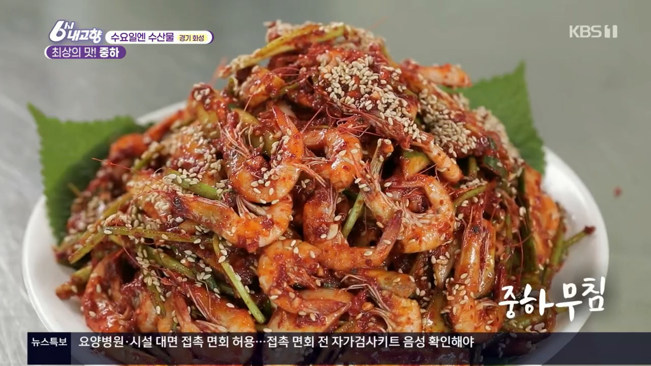 경기도 화성시 서신면에 있는 6시 내고향 수요일엔 수산물 경기화성 <중하새우 요리> 맛집 정보입니다. 중하 새우는 껍질이 얇아서 부담 없이 먹을 수 있는 게 장점입니다. 중하 버터구이, 중하 무침, 중하 매운탕 등